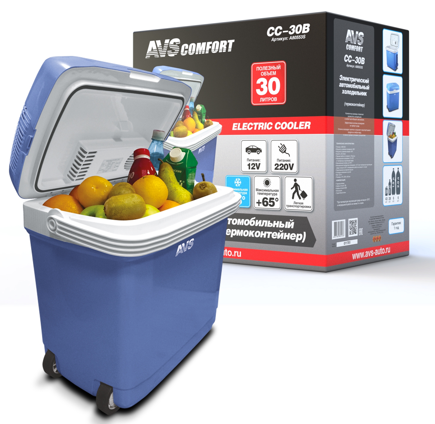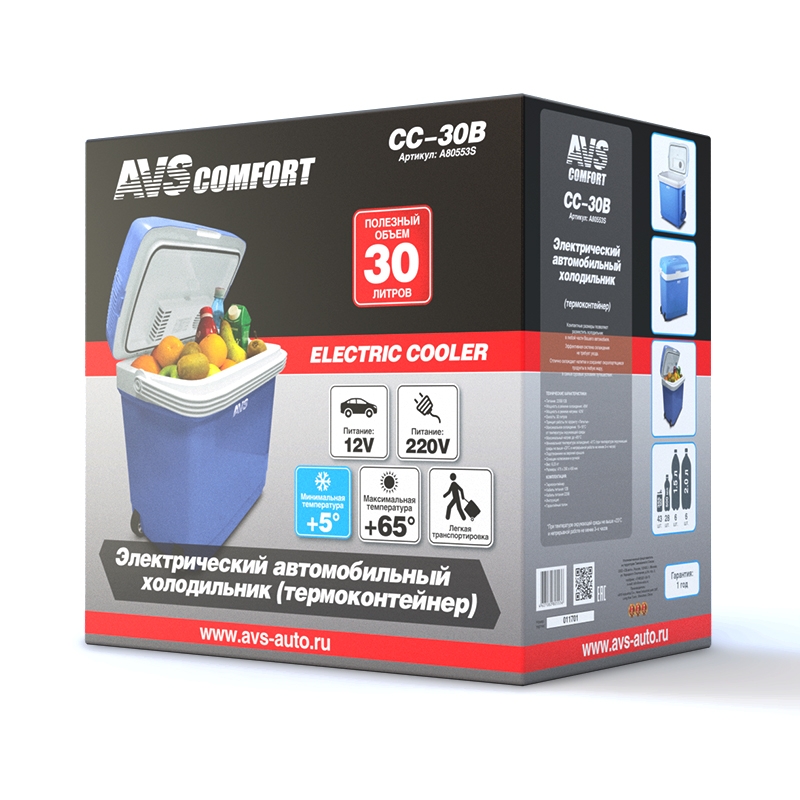 A80553S AVS Автохолодильник 30л 47.5х45.0х29.0см термоэлектр. с функц. нагрева 12V/220V 48W