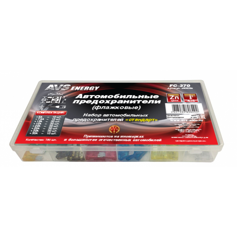 | Наименование | НАБОР ПРЕДОХРАНИТЕЛЕЙ AVS FC-370 BOX (180 ШТ) 'СТАНДАРТ' |