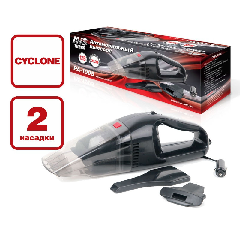 A80859S AVS Пылесос автомобильный 12V 60W в прикуриватель (2 насадки) Turbo AVS