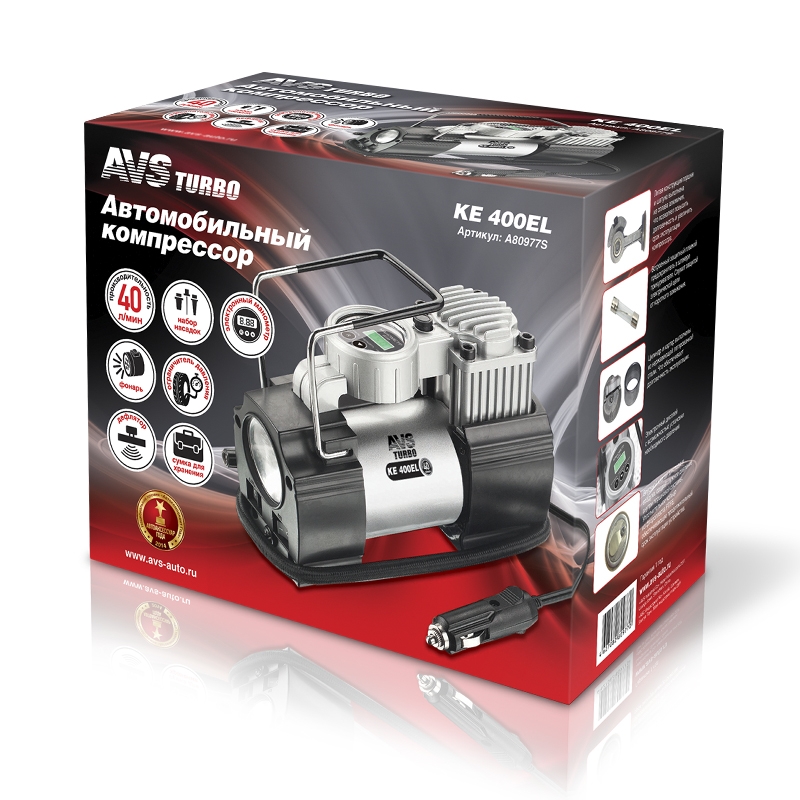 A80977S AVS Компрессор автомобильный 40л/мин. 10атм. 14А 12V в прикуриватель (фонарь) Turbo