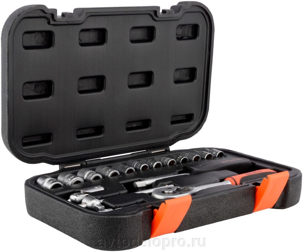 39917 AVTO DELO Набор головок (17 предметов) "АвтоDело" (1/4", с трещоткой и воротком, пласт. ке