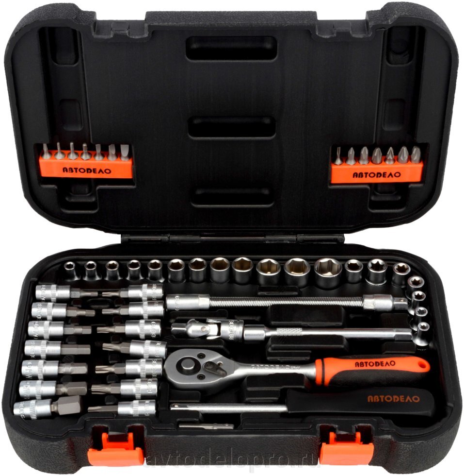 39922 AVTO DELO Набор головок торцевых,бит и бит-головок 1/4" 6-ти гранных 53 предмета в кейсе А