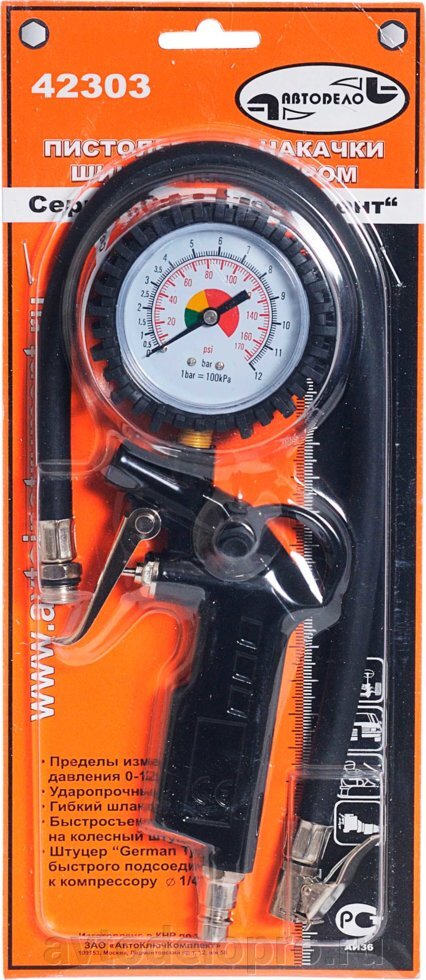 | Наименование | Пистолет для подкачки шин с манометром 10атм. (грузовой) АВТОДЕЛО |