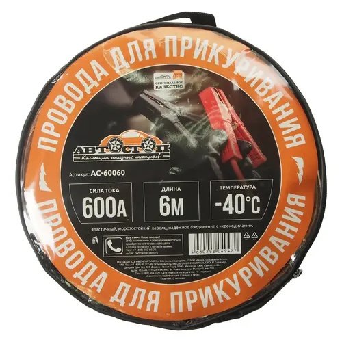 | Наименование | Провода для прикуривания 600А 6.0м в сумке АВТОСТОП |