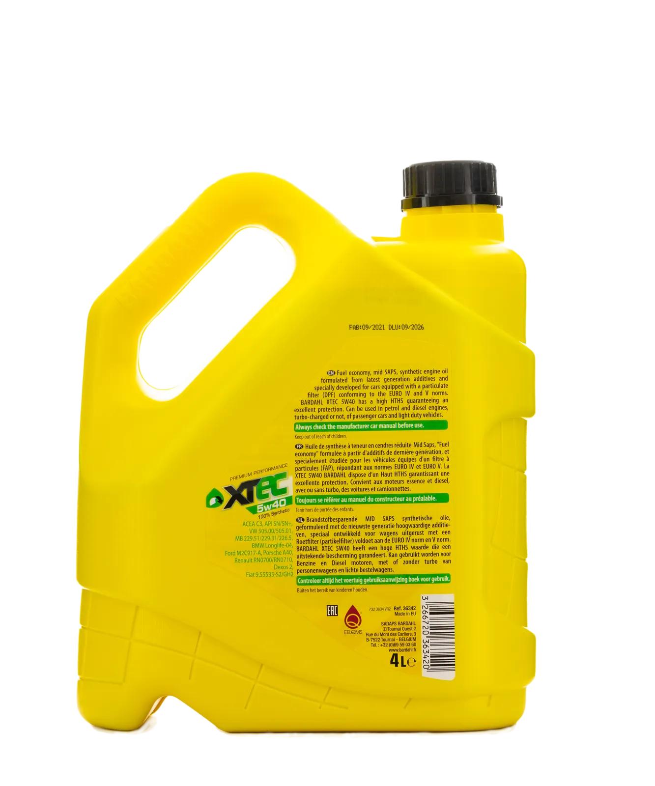 36342 BARDAHL Масло моторное синтетическое BARDAHL XTEC 5W-40 4л 36342