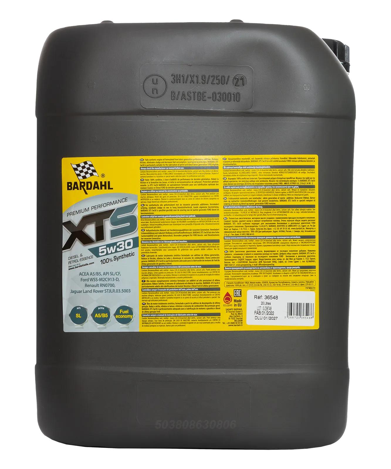 36548 BARDAHL BARDAHL Моторное масло 5W30 XTS SL/CF (синт.) 20L