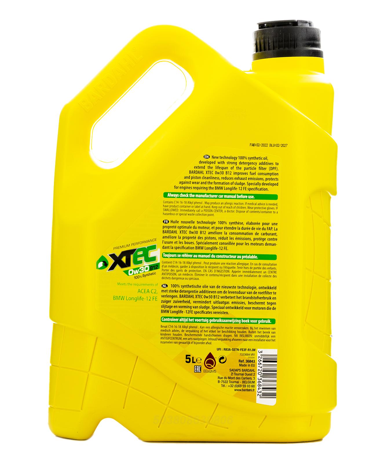36843 BARDAHL XTEC 0W30 B12 ACEA C2 (12) - BMW LL-12 FE 5L (специальное синт. моторное масло)