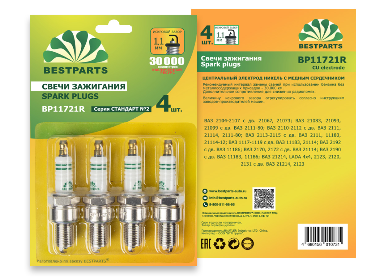 BP11721R BESTPARTS СВЕЧИ BESTPARTS 2108-10 8 КЛ. ИНЖЕКТОР BP11721R BP11721R