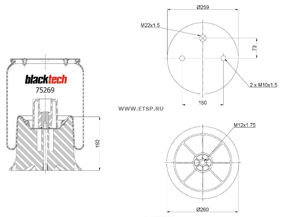 | Дополнительная информация | RML 75269 CP - пневматическая рессора Blacktech со стаканом, предназначена для замены и совместима с прицепами Schmitz Trailer. |