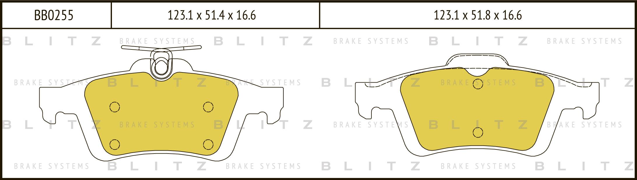 BB0255 BLITZ Колодки тормозные дисковые задние RENAULT Laguna 01-FORD Focus/C-Max 03-OPEL Vec