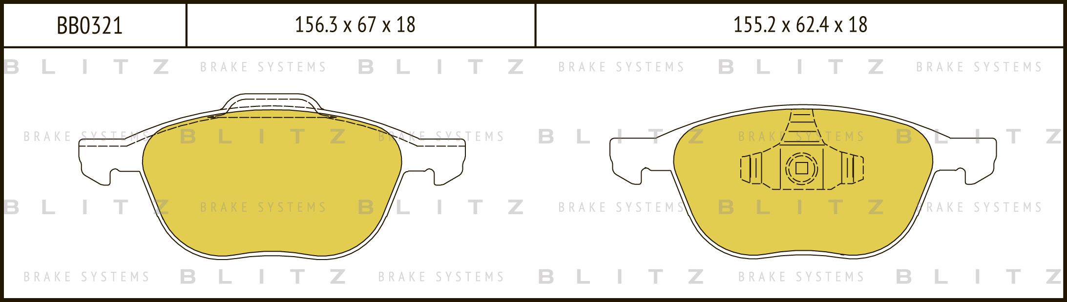 BB0321 BLITZ Колодки тормозные дисковые передние FORD Focus/C-Max 03-MAZDA 3 03-VOLVO S40 03-