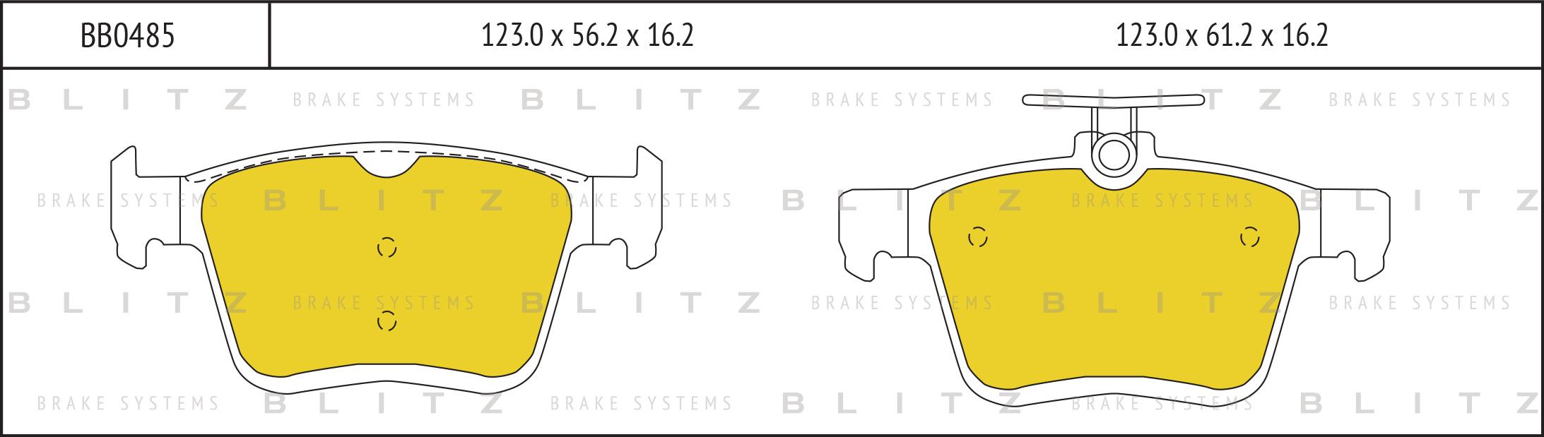 BB0485 BLITZ Колодки тормозные дисковые задние AUDI A3 12-VW Golf 12- BB0485
