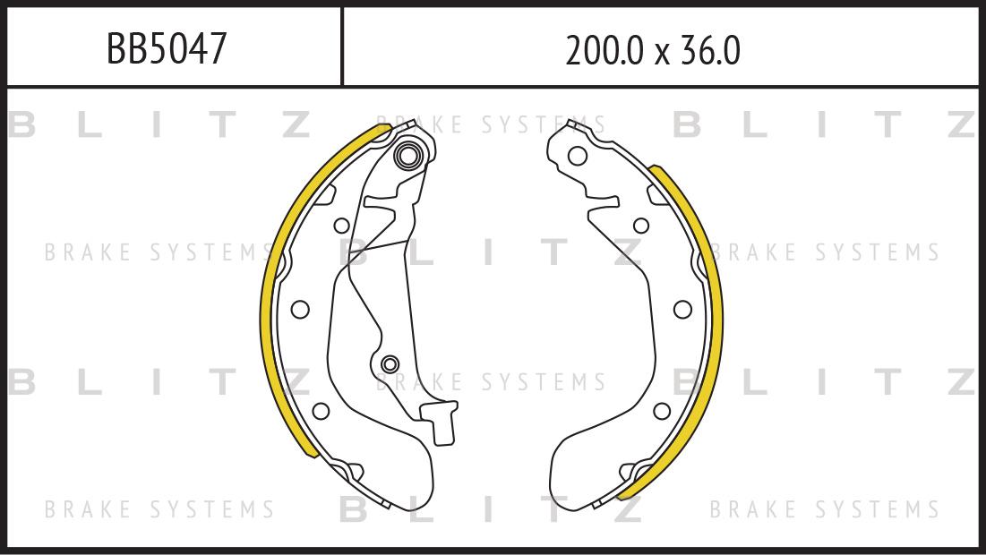 BB5047 BLITZ Колодки тормозные барабанные CHEVROLET Aveo/Kalos 02- BB5047