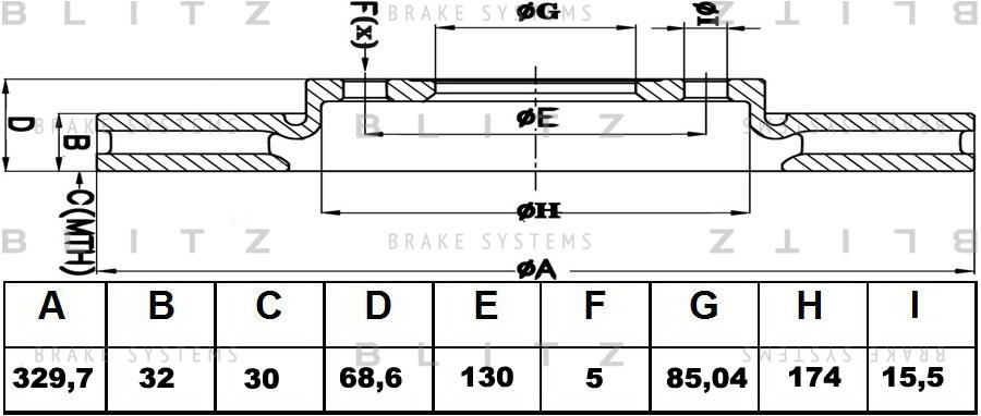 BS0222 BLITZ Диск тормозной передний левый вентилируемый VW Touareg 02-PORSCHE Cayenne 02- BS