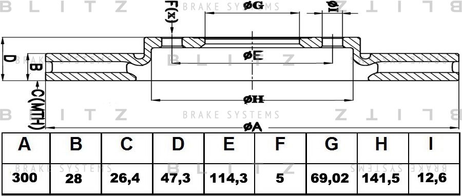 BS0303 BLITZ Диск тормозной передний вентилируемый HYUNDAI i40/ix35/Sonata/Tucson 04-KIA Spor