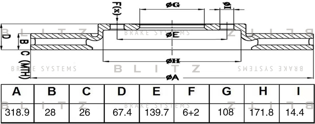 BS0671 BLITZ диск тормозной передний!\ Toyota Hi-Lux PickUp 2.5D/3.5D 05>