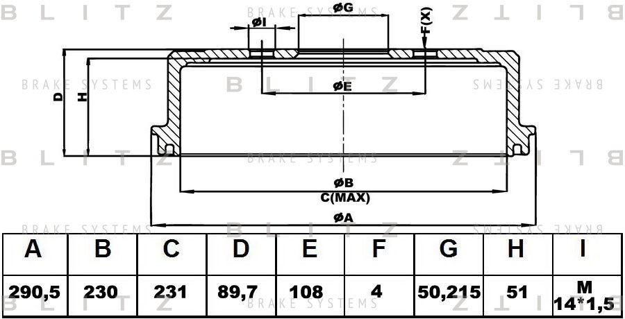 BT0110 BLITZ Барабан тормозной AUDI 100/200/80 76- BT0110