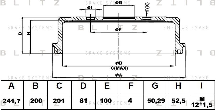 BT0127 BLITZ Барабан тормозной CHEVROLET Lanos 05-DAEWOO Espero/Lanos 95- BT0127