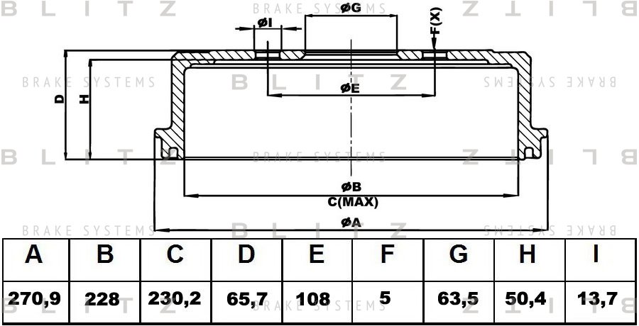 BT0137 BLITZ Барабан тормозной FORD Focus/Ranger 04-MAZDA B-Series 02- BT0137