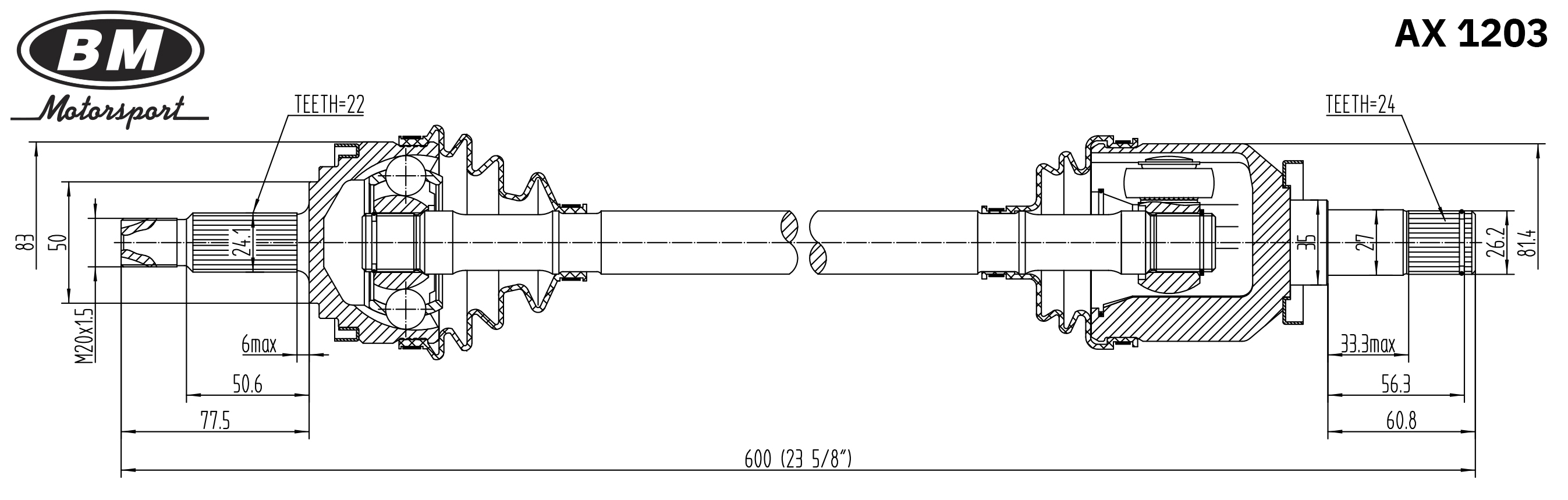 AX1203 BM MOTORSPORT Привод в сборе левый AX1203