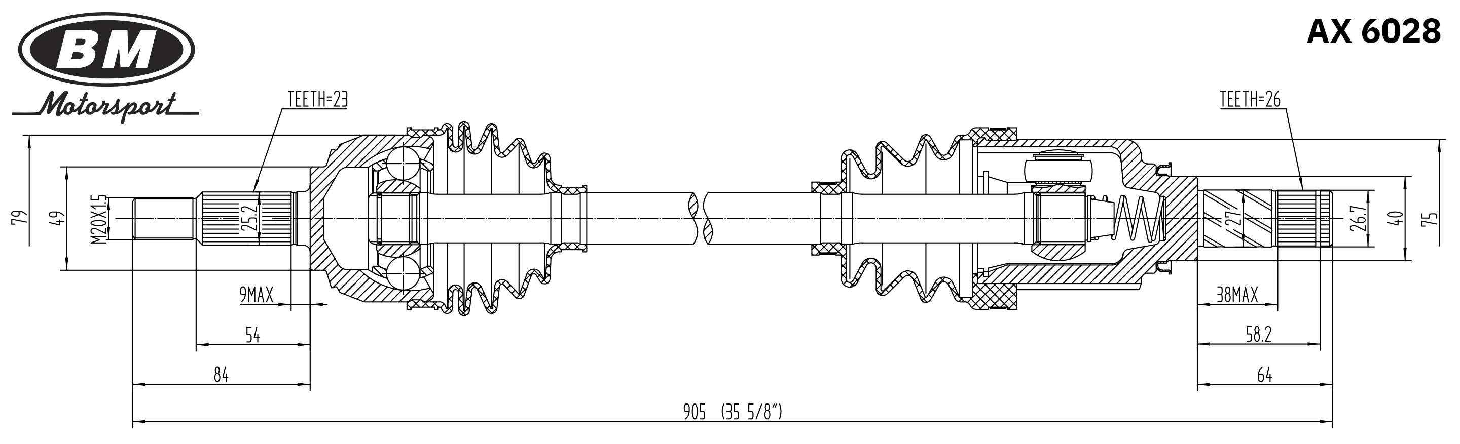 AX6028 BM MOTORSPORT Привод в сборе правый AX6028