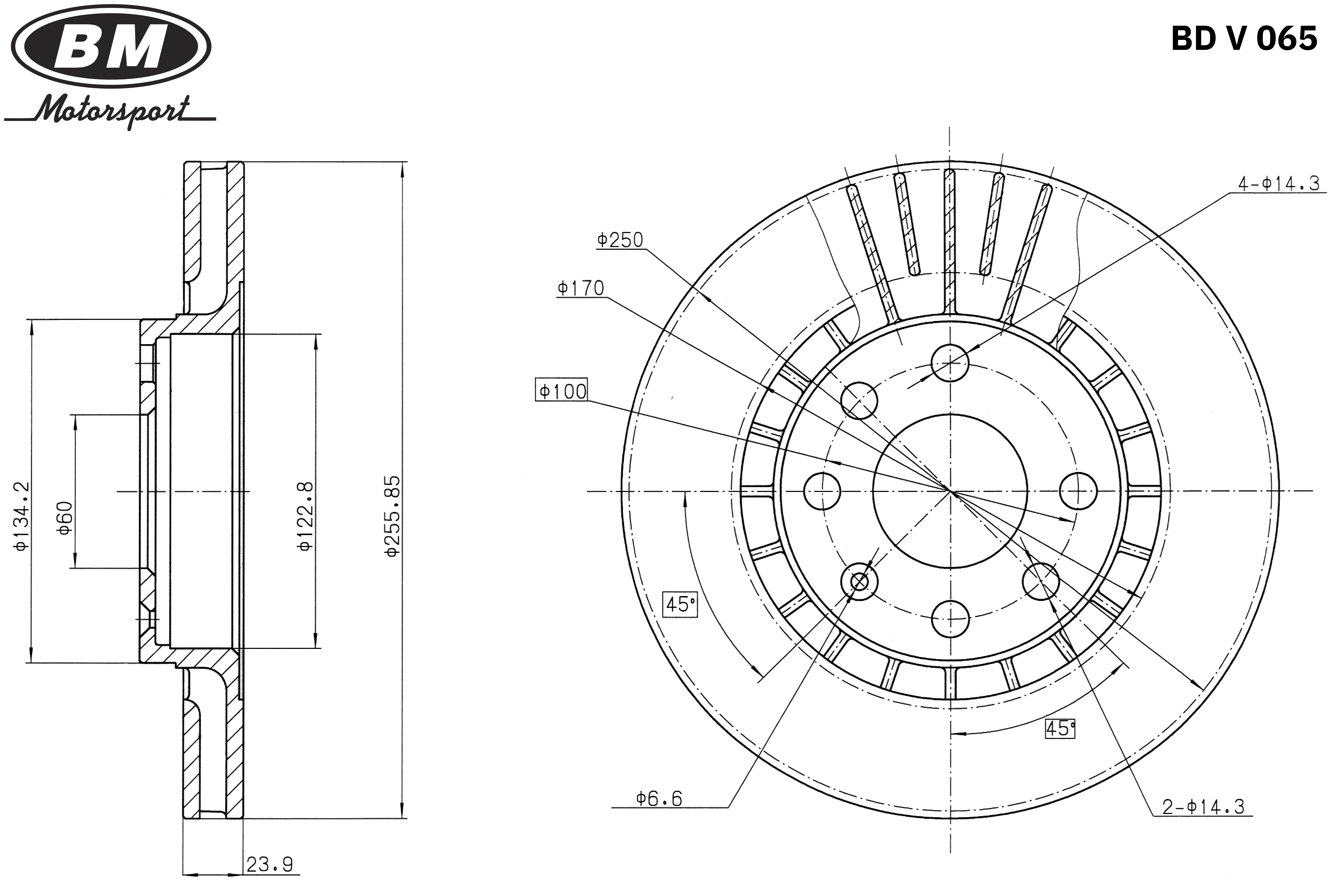 BDV065 BM MOTORSPORT Диск тормозной вентилируемый, 256 мм (1 шт.) BDV065