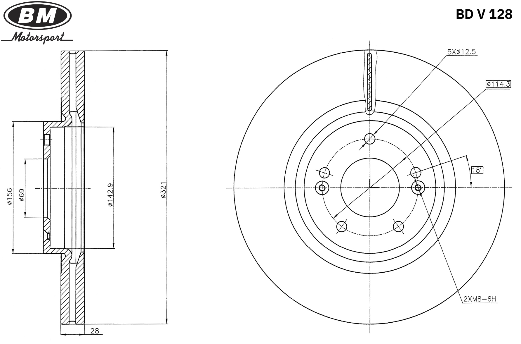 BDV128 BM MOTORSPORT Диск тормозной передний вентилируемый 321X28MM 5/114,3(1шт.) BDV128