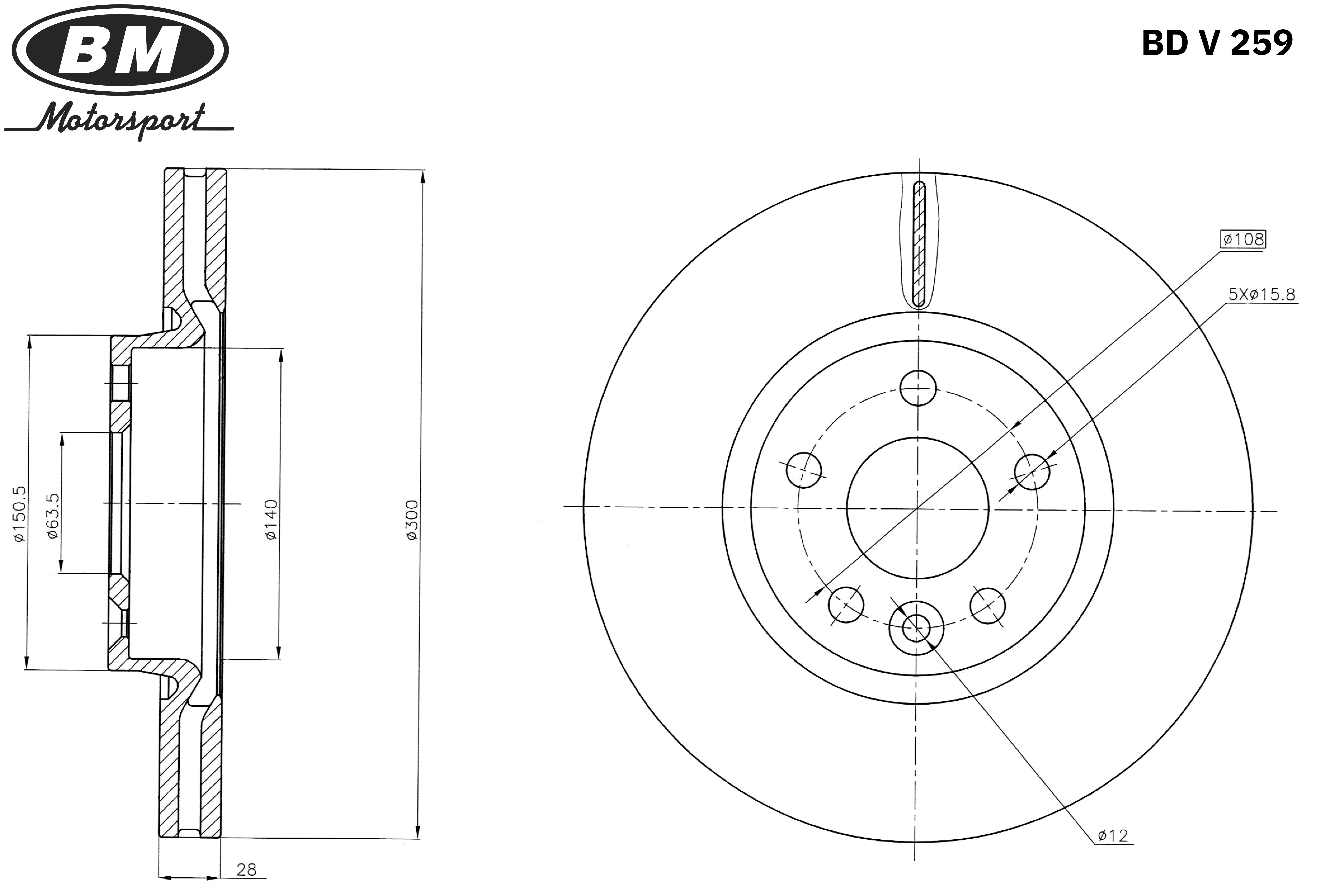 BDV259 BM MOTORSPORT Диск тормозной вентилируемый (1шт.) BDV259