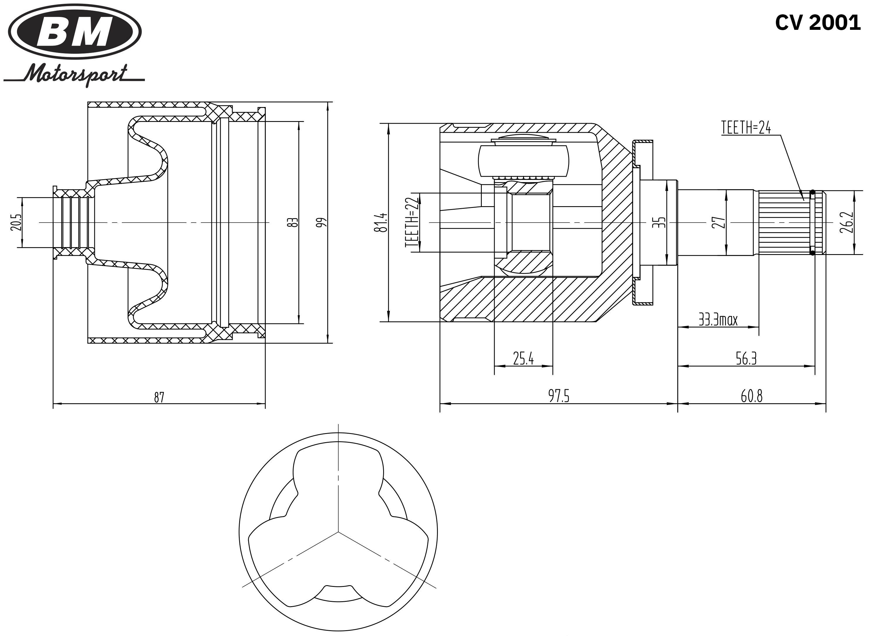 CV2001 BM MOTORSPORT ШРУС внутренний трипоидный с пыльником CV2001