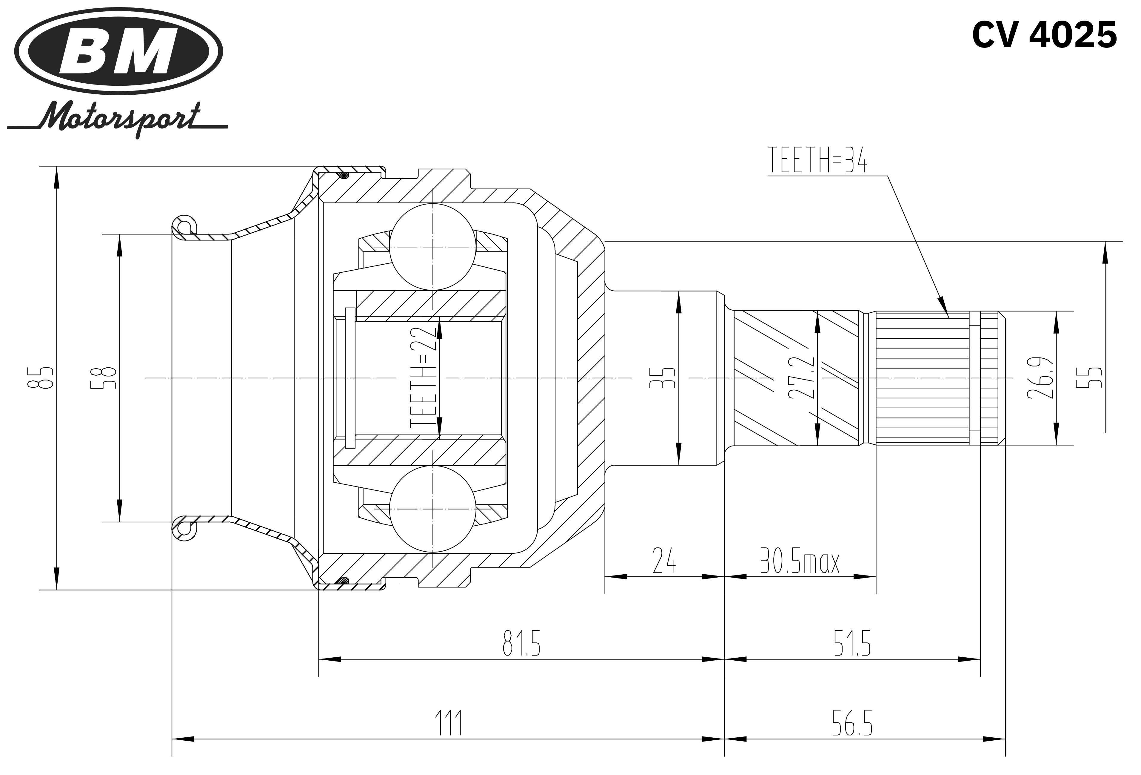 CV4025 BM MOTORSPORT Шрус внутренний с пыльником CV4025