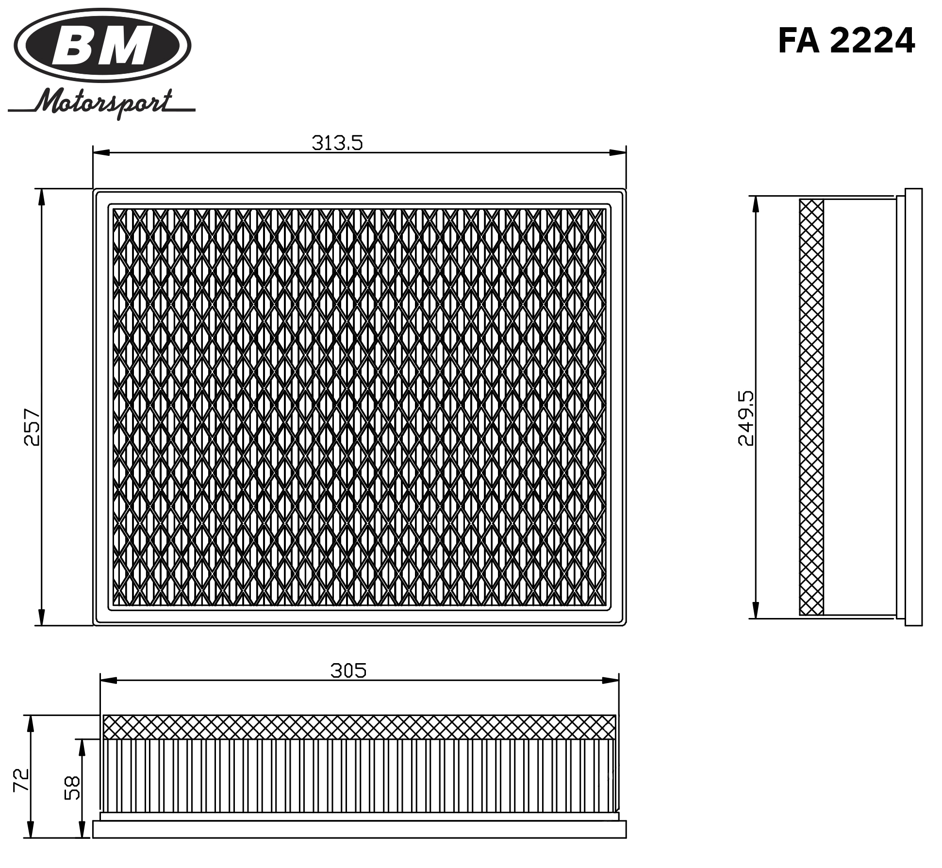 FA2224 BM MOTORSPORT Фильтр воздушный VOLKSWAGEN AMAROK 2.0TD '10- FA2224
