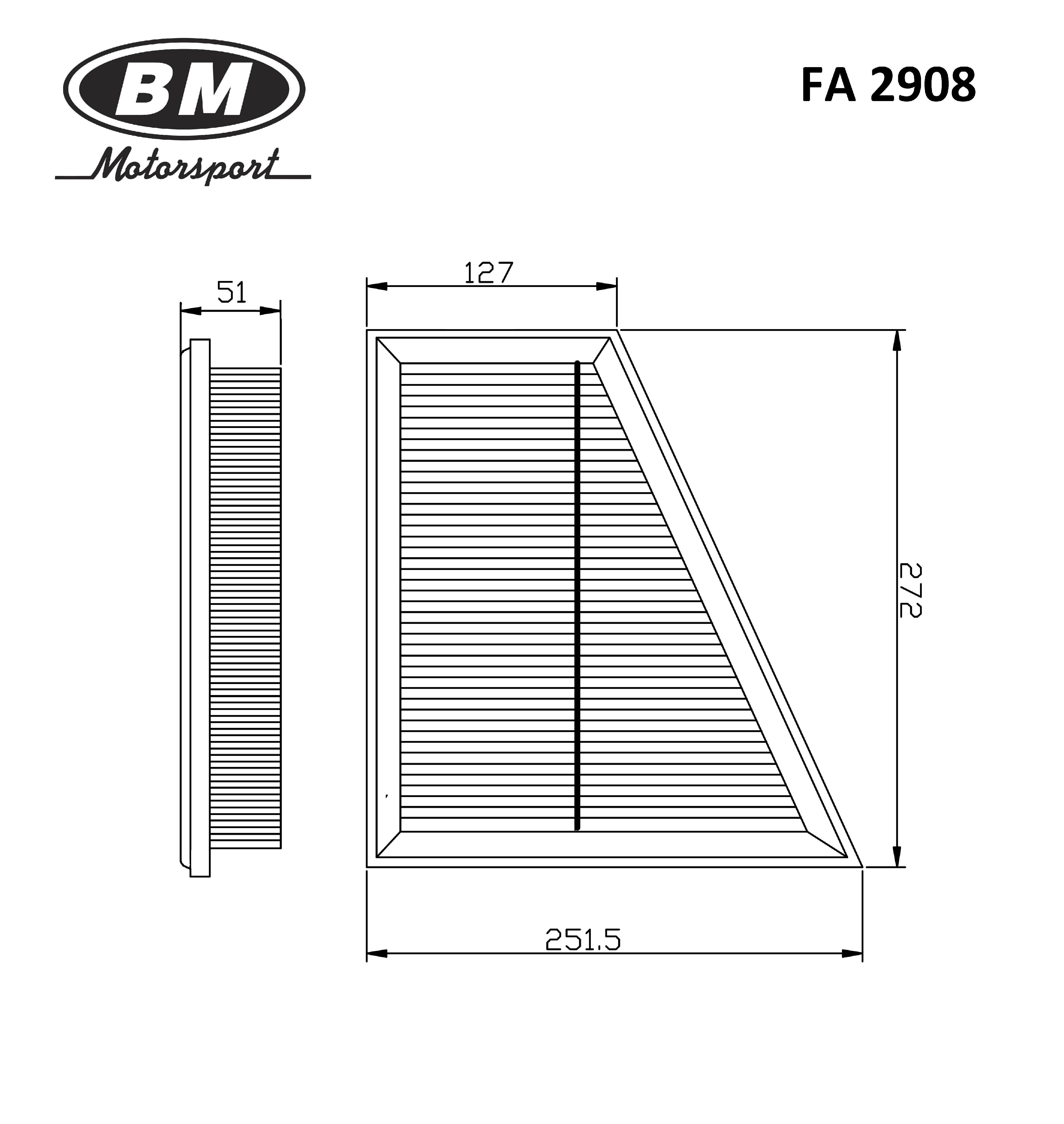 FA2908 BM MOTORSPORT Фильтр воздушный FA2908