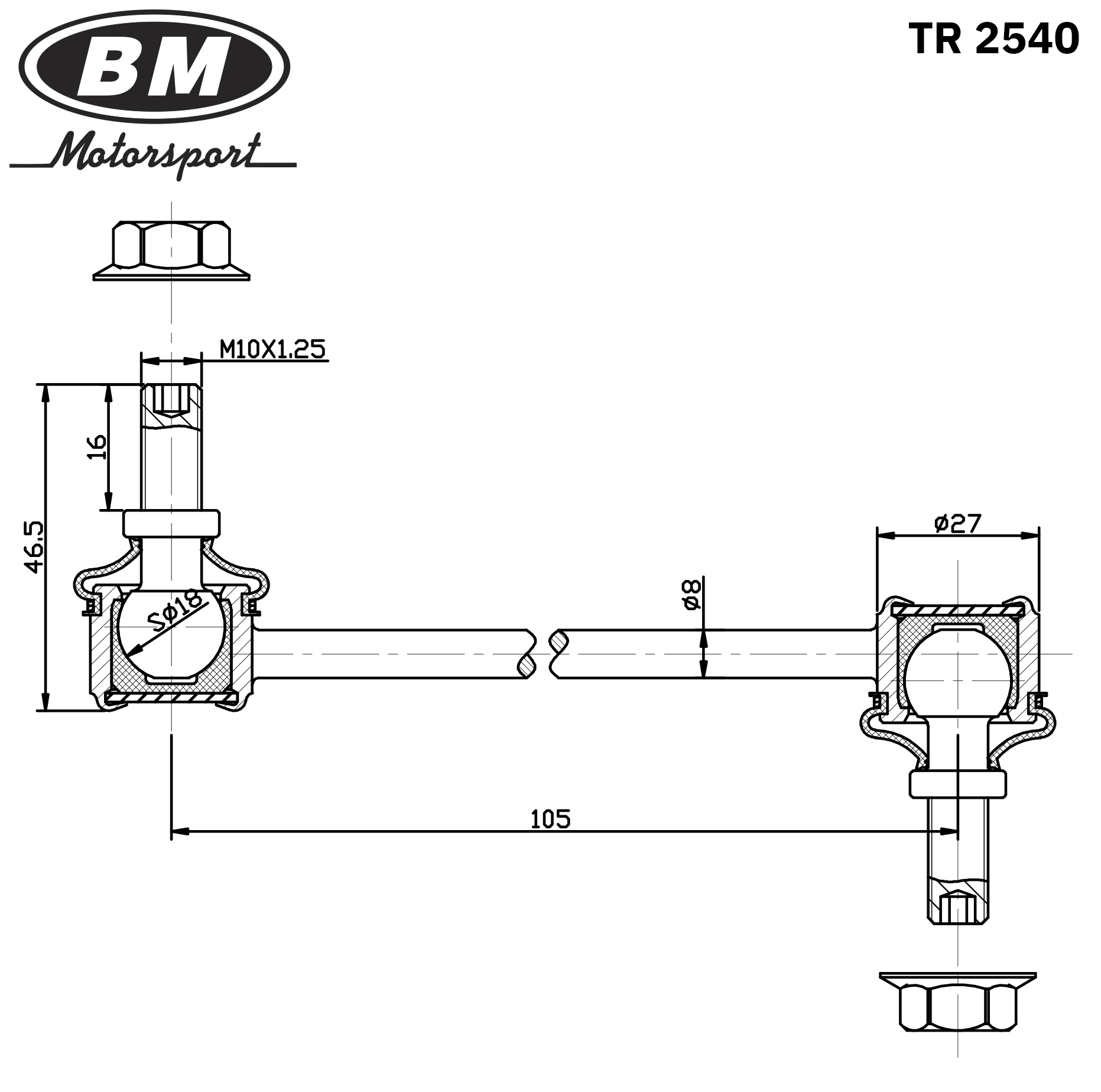 TR2540 BM MOTORSPORT Стойка стабилизатора заднего, праваялевая, BM TR2540