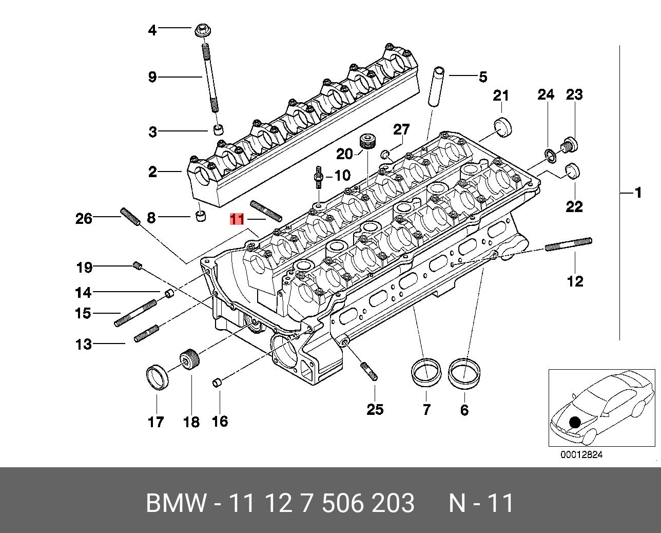 11 12 7 506 203 BMW Шпилька BMW X5 (E53) коллектора выпускного OE
