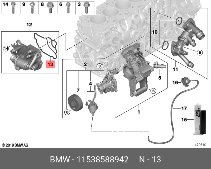 11 53 8 588 942 BMW Уплотнение корпуса термостата 11538588891 11538588942