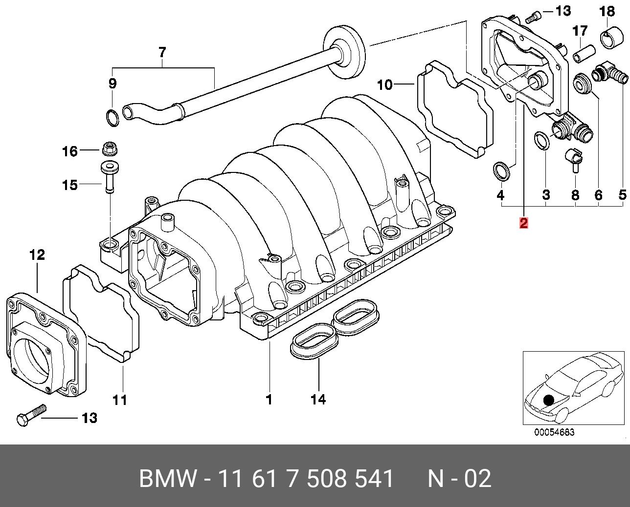 11 61 7 508 541 BMW клапан вентиляции картера! крышка\ BMW E53