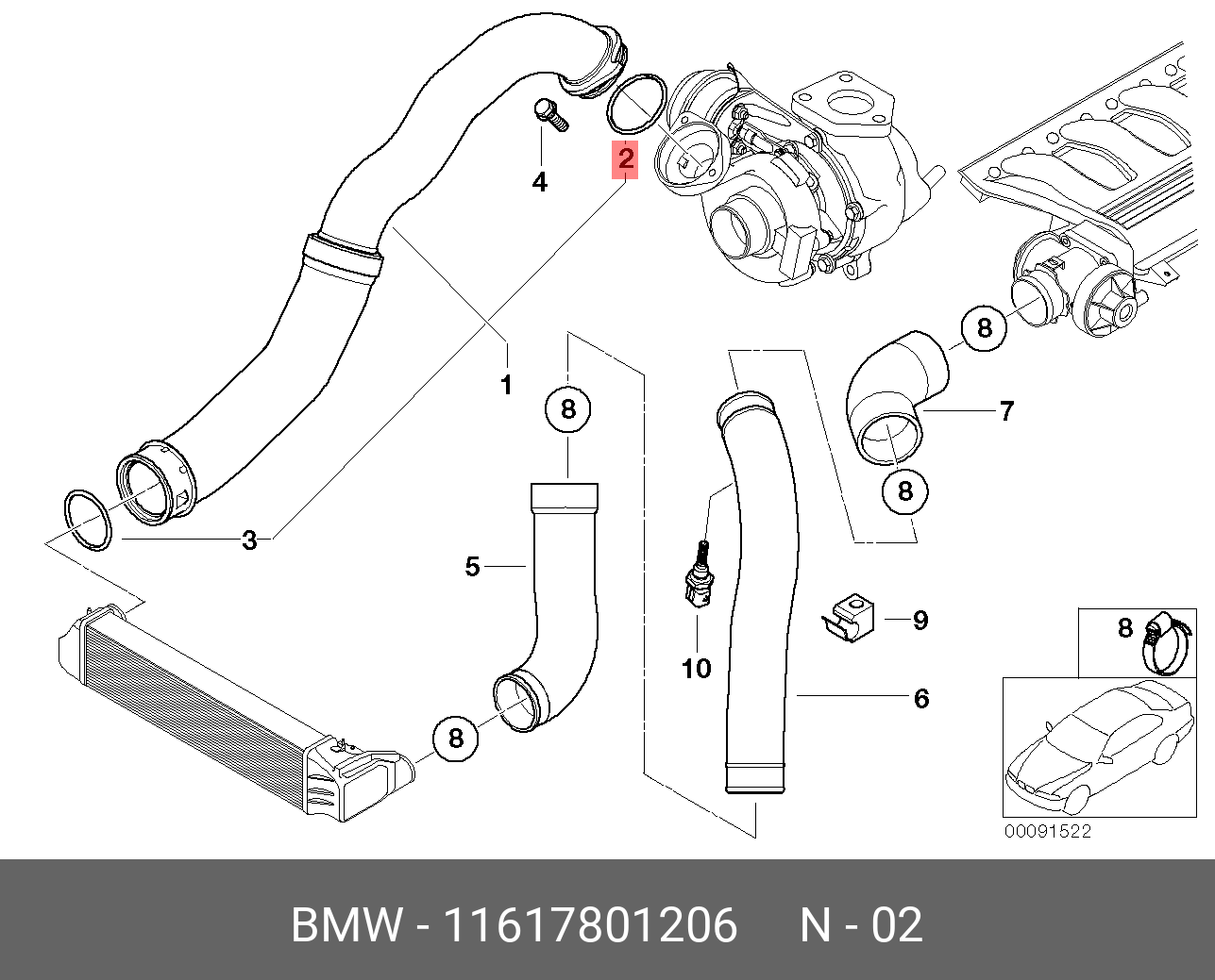 | Наименование | кольцо уплотнительное патрубка наддува!\ BMW E87/E90/E91/E60/E61/E83 |
