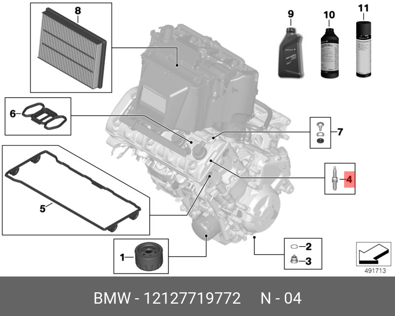 12 12 7 719 772 BMW Свеча зажигания MOTO BMW S 1000 R / RR / XR , G 310 GS / R 12127719772