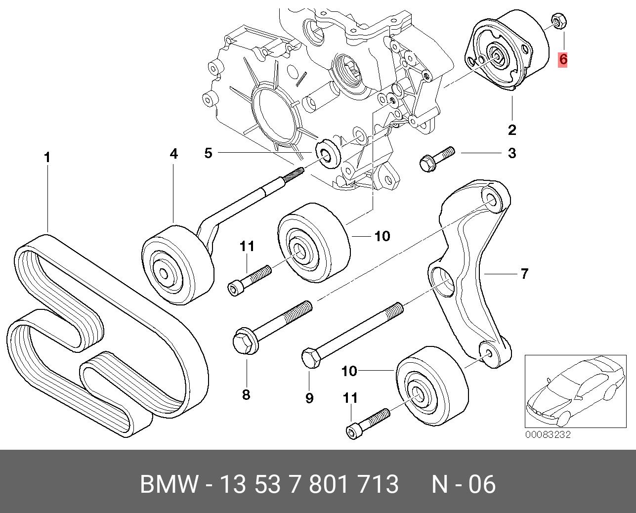 13 53 7 801 713 BMW гайка кронштейна форсунки!\BMW E87/E46/E90/E91/E92/ E93/E39/E60