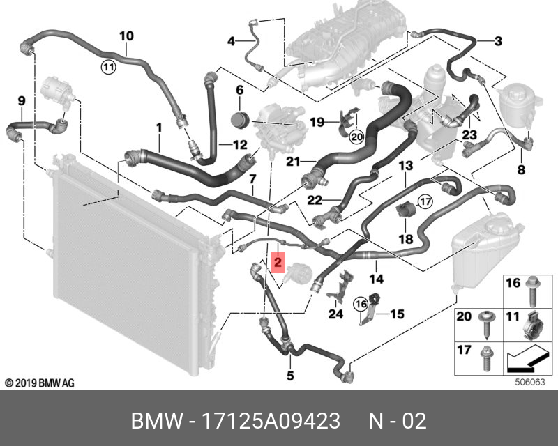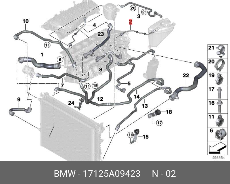 17125A09423 BMW Труба радиатор ОЖ-расширительный бачок 17125A09423