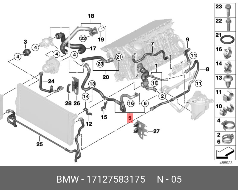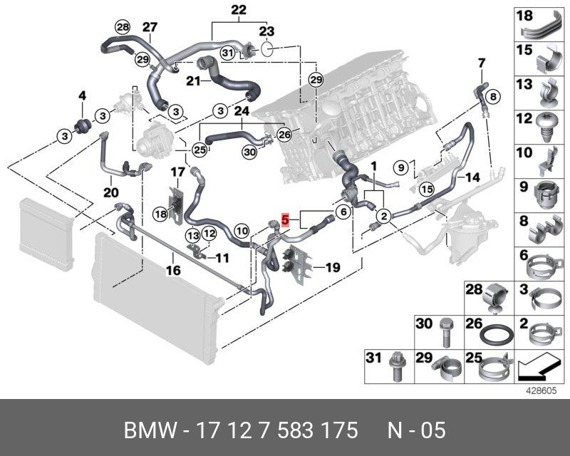 17 12 7 583 175 BMW Шланг системы охлаждения ! \BMW 5' F07 GT, LCI, F10, F11, F18, 7' F01, F02