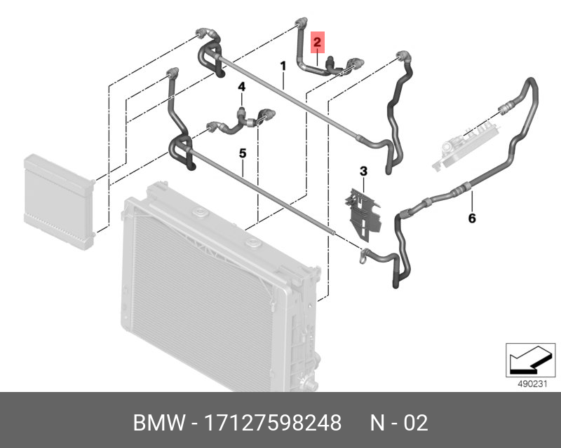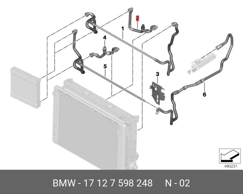 17 12 7 598 248 BMW Шланг BMW 5 (F10/F11),7 (F01/F02/F03/F04) (09-16) системы охлаждения OE