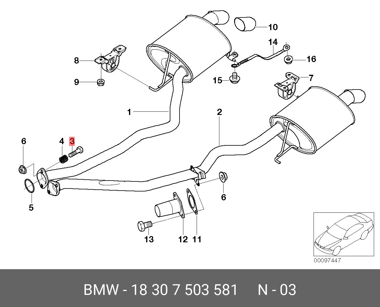 18 30 7 503 581 BMW Болт BMW X5 (E53) (00-) (3.0/4.4) крепления выхлопной системы OE