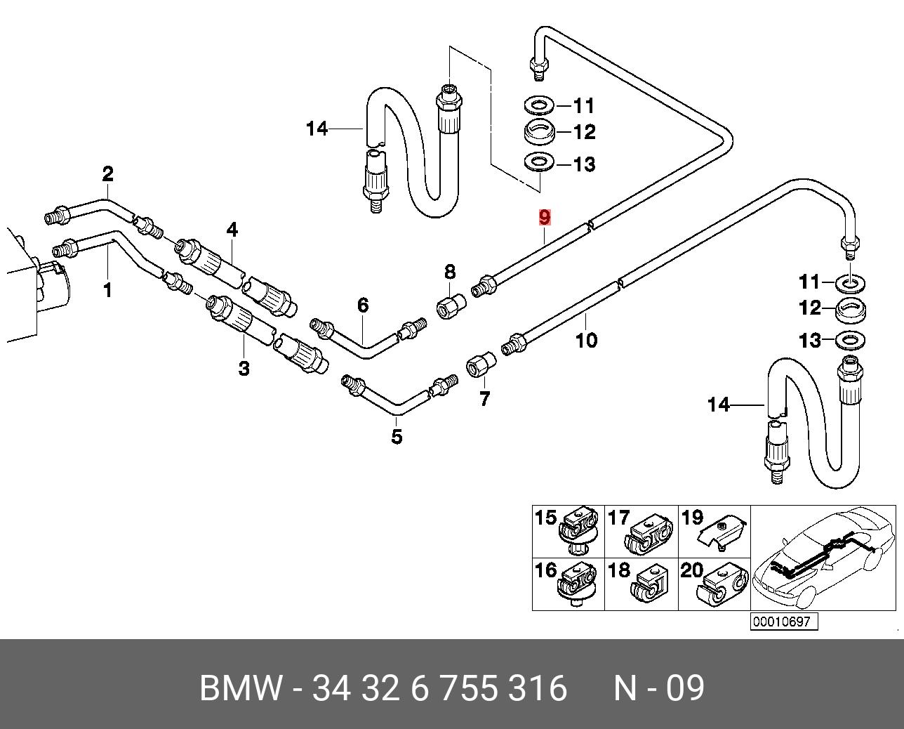 34 32 6 755 316 BMW трубопровод тормозной !M10/M10-2817mm\ BMW 5 E39