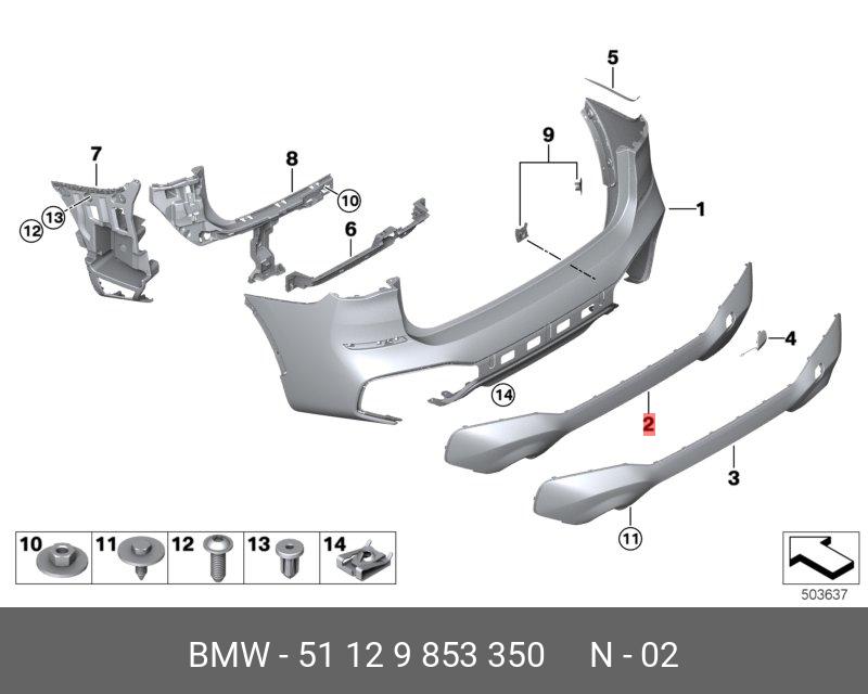 51 12 9 853 350 BMW 51129853350 Облицовка бампера Зд Нж