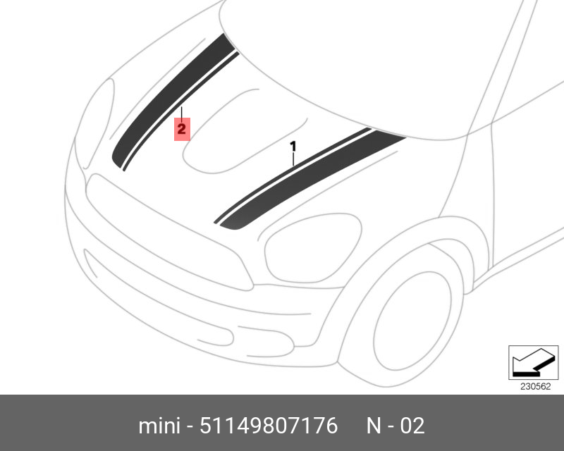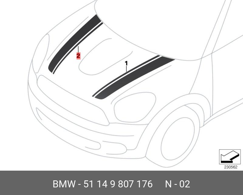 51 14 9 807 176 BMW Наклейка декоративная MINI Cooper на капот правая OE