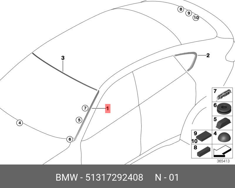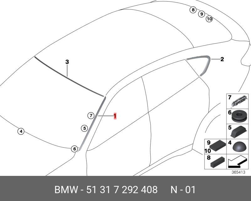 51 31 7 292 408 BMW Молдинг BMW X6 (F16) стекла ветрового правый OE