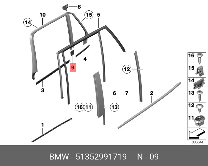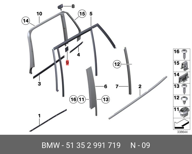 51 35 2 991 719 BMW Уплотнитель стекла BMW X1 (E84) двери OE