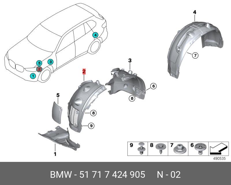 51 71 7 424 905 BMW 51717424905 Кожух колесной ниши передняя часть Л Пд ! \BMW X5 G05