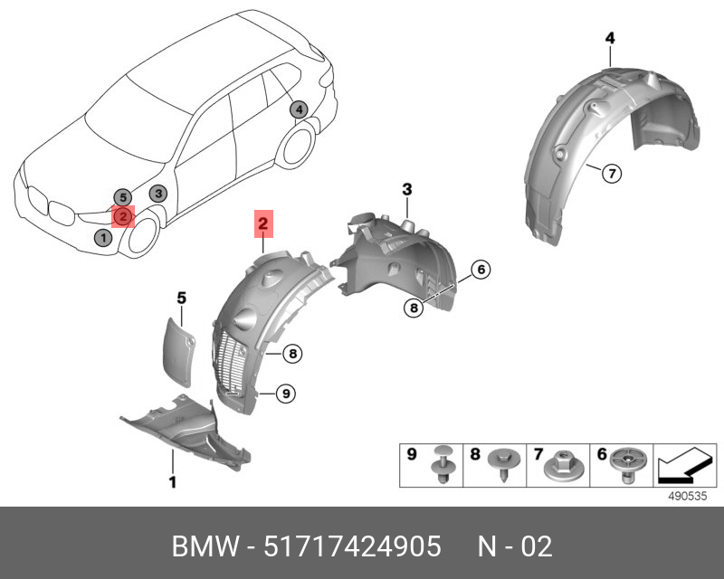 | Наименование | 51717424905 Кожух колесной ниши передняя часть Л Пд ! \BMW X5 G05 |